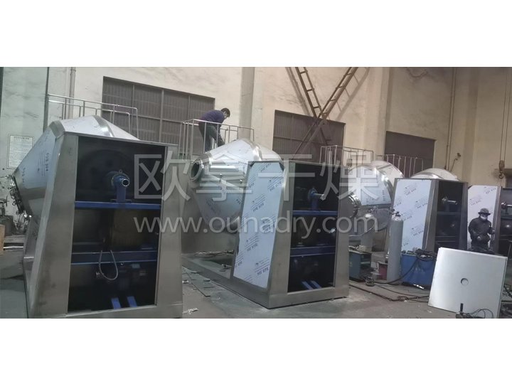 ◎在動(dòng)力驅(qū)動(dòng)下,罐體作緩慢旋轉(zhuǎn),罐內(nèi)物料不斷地混合,從而達(dá)到強(qiáng)化干燥的目的。