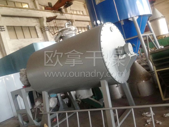 本機(jī)是一種新穎臥式間歇式真空干燥設(shè)備,濕物料經(jīng)傳導(dǎo)蒸發(fā),帶有刮板攪拌器不斷清除熱面上的物料,并在容器內(nèi)推移形成循環(huán)流,水份蒸發(fā)后由真空泵抽出。